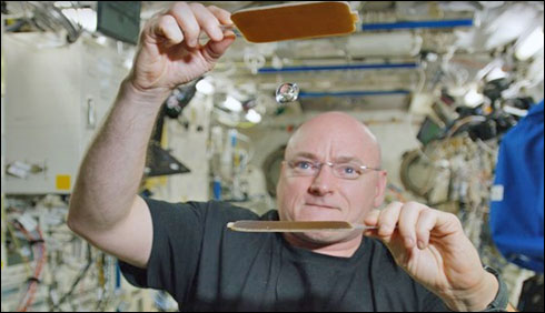 نیویارک ……امریکی خلابازاسکاٹ کیلی نے بین الاقوامی خلائی اسٹیشن پر پانی کے بلبلے کے ساتھ پنگ پونگ کھیلنے کاایسا انوکھا مظاہرہ پیش کیا جس نے سب کو حیران کردیا ہے۔انٹرنیشنل اسپیس اسٹیشن پر اپنے300دن مکمل ہونے کی خوشی میں اسکاٹ نے اس دلچسپ مظاہرے کو پیش کرنے کے لئے ہائیڈرو فوبک پیڈل کا استعمال کیا جس سے پانی جذب نہیں ہوا بلکہ اوپر نیچے اچھلتا رہا۔