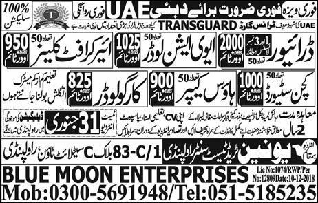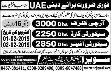100+ Security Guards, Drivers, Clerks, Loaders & Other Posts in Dubai for Pakistani Nationals30 January, 2019 Post Views - پوسٹ کو دیکھا گیا: 46