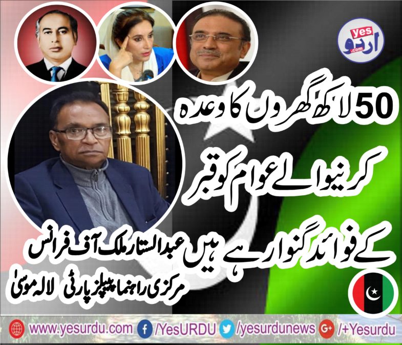 پیرس؍لالہ موسیٰ؍اسلام آباد(ایس ایم حسنین) پاکستان پیپلز پارٹی لالہ موسیٰ کے سینئر راہنما عبدالستار ملک نے حکومت پرشدید تنقید کرتے ہوئے کہا کہ 50لاکھ گھروں کا وعدہ کرنے والے عوام کو قبروں کے فوائد گنوانا شروع ہوچکے ہیں اور کروڑ نوکریوں کے وعدے والوں نے عوام الناس کو بھیک مانگنے پر مجبور کردیا ہے۔