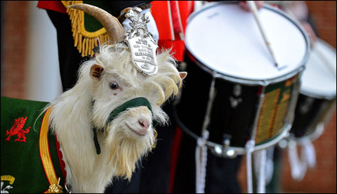 طانوی فوج میں بھرتی ہونیوالا یہ ویلن نامی کم عمر بکرا ہے جسے فرسٹ ویلش رجمنٹ میں بھرتی کیا گیا ہے۔بھرتی کے موقع پر باقاعدہ پاسنگ آؤٹ پریڈ کی گئی جس میں اسکے ساتھ فوجیوں نے بھی حصہ لیا۔برطانوی فوج کی فرسٹ ویلش رجمنٹ میں ایک بکرا بھرتی کرنے کی روایت سترہویں صدی سے چلی آ رہی ہے۔ اسی روایت کو برقرار رکھتے ہوئے ملکہ کی 90ویں سالگرہ پر اس رجمنٹ میں ایک بکرا بھرتی کرنے کی منظوری دی گئی تھی