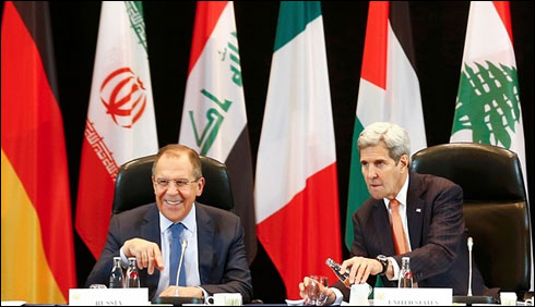 جرمنی کے شہر میونخ میں شام کی صورتحال پر امریکا اور روس سمیت عالمی طاقتوں کے درمیان مزاکرات ہوئے، جس میں درجن سے زائد ممالک کے نمائندوں نے شرکت کی۔مزاکرات کے بعد پریس کانفرنس کے دوران امریکی وزیر خارجہ جان کیری کا کہنا تھا کہ شام میں خانہ جنگی کے خاتمے پر عمل درآمد اور متاثرہ شہروں میں امداد کی فوری رسائی پر اتفاق ہو گیا ہے۔ انہوں نے کہا کہ جتنا جلدی ممکن ہوسکے شام کے بحران پر جنیوا امن مزاکرات بھی شروع کیے جائیں گے اور داعش اور دیگر جنگجو گروپوں کے خلاف جنگ بندی کا اطلاق نہیں ہوگا۔اس موقع پر روسی وزیر خارجہ سرگئی لاروف کا کہنا تھا کہ داعش ہمارا مشترکہ دشمن ہے۔ شام میں داعش اور النصرہ فرنٹ کے خلاف روس کے فضائی حملے جاری رہیں گے۔ انہوں نے شام میں فضائی کارروائیوں کے لیے روس اور اتحادی افواج کے درمیان تعاون پر زور دیا ہے۔