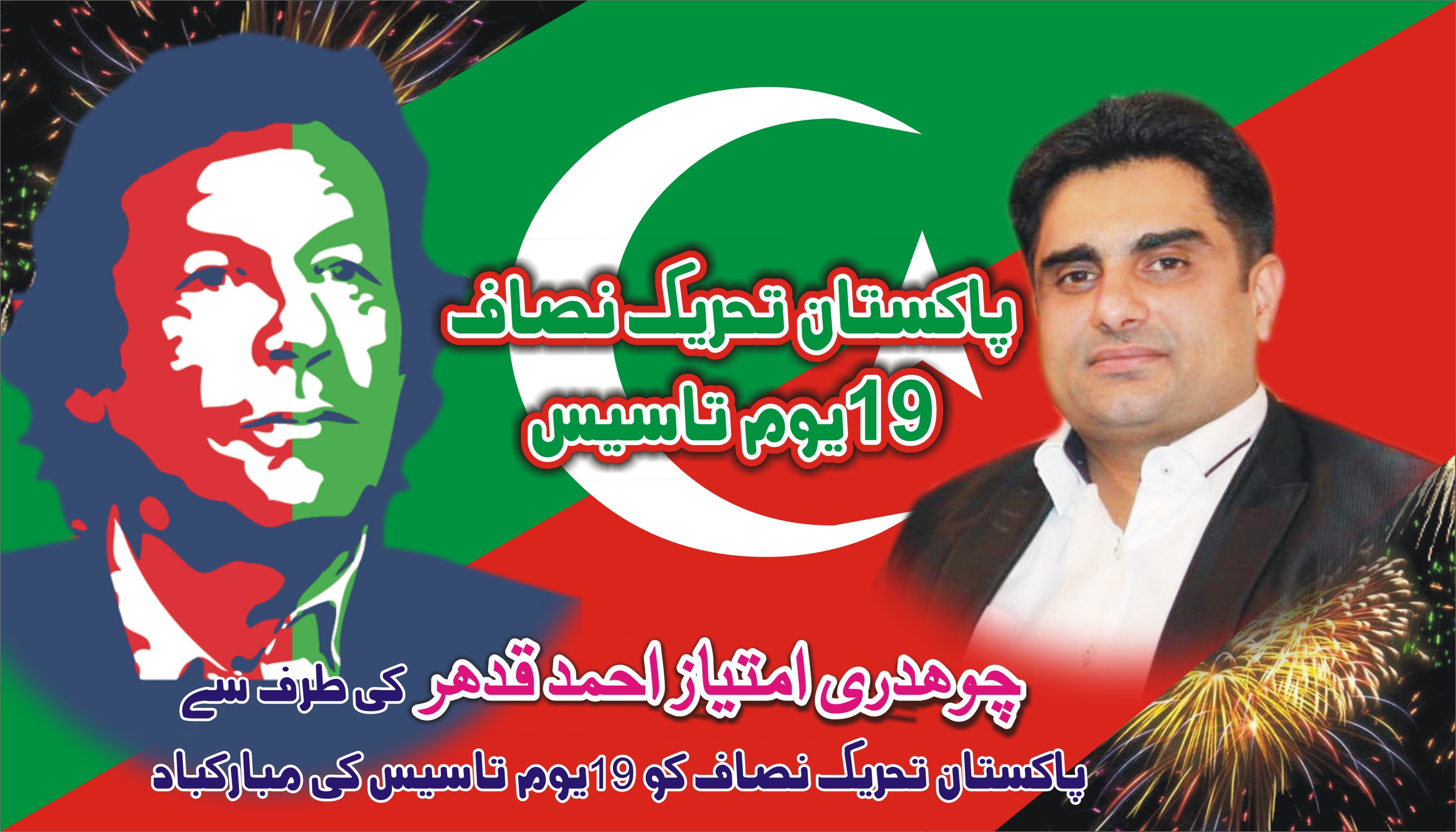 چوہدری امتیاز اکرم قدھر کی طرف سے پاکستان تحریک انصاف کے ۱۹یوم تاسیس کی مبارکباد کااشتہار۔PTI Post Views - پوسٹ کو دیکھا گیا: 151