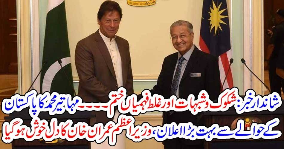 مسلم ممالک کو اسلام کا مثبت تشخص دنیا کے سامنے لانا ہوگا۔ پتراجایا میں وزیراعظم عمران خان اور ملائیشین وزیراعظم مہاتیر محمد کے درمیان وفود کی سطح پر مذاکرات میں تجارت سرمایہ کاری، صنعت، دفاع اور مختلف شعبوں پربات چیت کی گئی۔ دونوں وزرائے اعظم کے درمیان ون آن ون بھی ملاقات ہوئی جس کے بعد مشترکہ پریس کانفرنس کرتے ہوئے ملائیشین وزیراعظم مہاتیر محمد نے کہا کہ وزیر اعظم پاکستان سے جامع مذاکرات ہوئے ہیں، دفاع اور تعلیم کے شعبوں میں دوطرفہ تعاون بڑھانے پر اتفاق کیا گیاہے۔ دونوں ممالک تجارتی رکاوٹوں کو دور کرکے باہمی تجارت کو بھی فروغ دیں گے۔