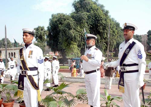 تقریب میں پاکستان نیوی کے چاق و چوبند دستے نے مزاراقبال پر گارڈز کےف رائض سنبھالے ،اس سے پہلے پاکستان رینجرز کا دستہ مزاراقبال پر گارڈز کے فرائض سرانجام دے رہا تھا۔
