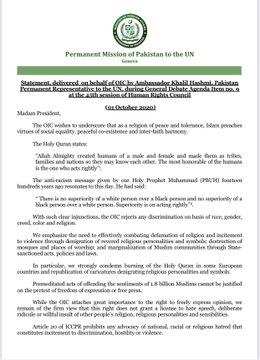 on behalf of #OIC countries at the UN Human Rights Council #HRC45 about global resurgence in #Islamophobia: