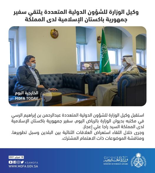 Ambassador Raja Ali Ejaz held a meeting with Abdur Rahman Ar-Rasi, Deputy Minister for Multilateral Affairs in the Saudi Ministry of Foreign Affairs.