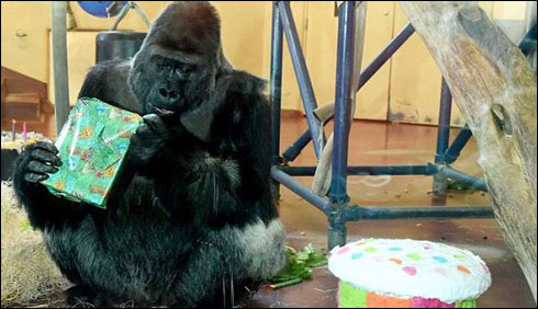 نیویارک …….امریکا کے شہر فلاڈیلفیا میں واقع چڑیا گھر میں موجودموتوبانامی گوریلا کی 31ویں سالگرہ دھوم دھام سے منائی گئی اورخصوصی طورپر کیک بھی تیار کیا گیا۔اس موقع پرگوریلے کی پسندیدہ خوراک کو مد نظر رکھتے ہوئے تیار کیا گیا یہ کیک اس کو پیش کیا گیا جو اس نے خوب مزے لے کر کھایا۔سالگرہ کے موقع پر چڑیا گھر کی جانب سے موسیقی کا بھی خاص انتظام کیا گیا تھا جبکہ گوریلے کو مختلف تحفے تحائف بھی پیش کئے گئے تھے۔