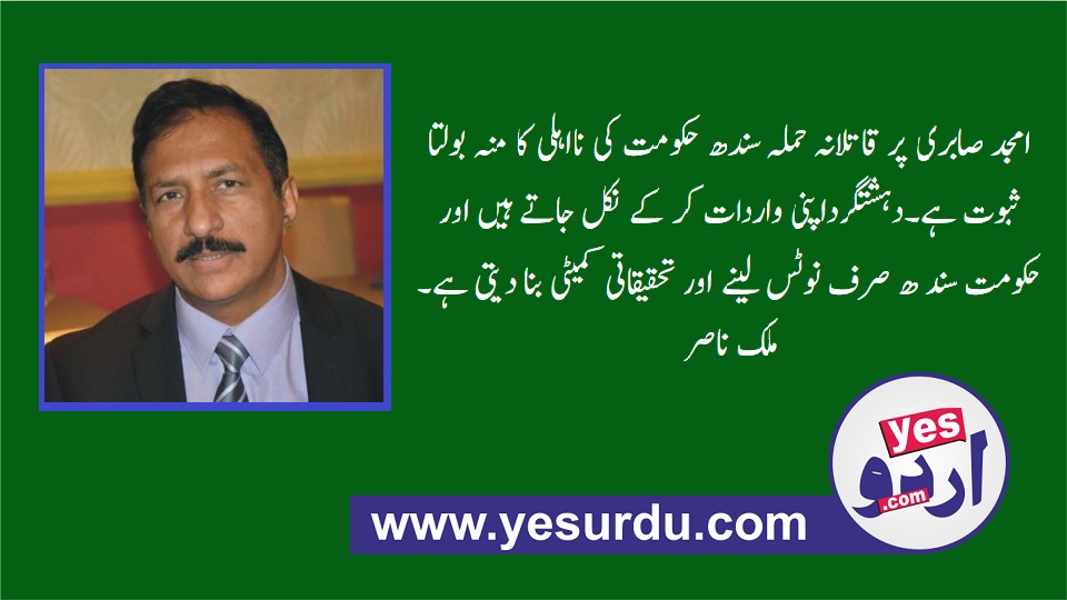امجد صابری پر قاتلانہ حملہ سندھ حکومت کی ناکامی ہے ۔ملک ناصر