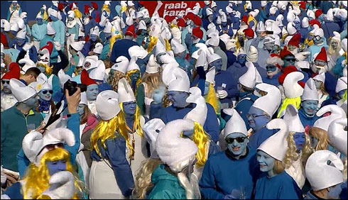 برسلز……نیلے رنگ کے مشہور اینیمیٹیڈکرداد اسمرف کے مداح یوںتو بہت ہیںلیکن اس کردار کے دنیا میں ایسے دیوانےبھی ہیں جوان کے لباس میں نظر آنے کاریکارڈ بنانے کےلئے سڑکوں پر نکل آئے۔