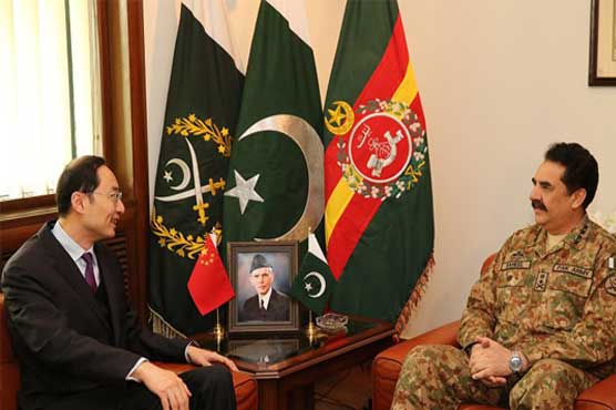 ذرائع کا کہنا ہے کہ چین کے سفیر نے آپریشن ضرب عضب میں پاک فوج کی کامیابیوں کو سراہا اور یقین دلایا کہ دہشت گردی کے خلاف جنگ میں چین پاکستان کے ساتھ کھڑا ہے۔