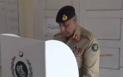 آئی ایس پی آر کے مطابق آرمی چیف نے ایف جی قائداعظم سیکنڈری سکول چکلالہ پی پی 11 پولنگ سٹیشن نمبر 45 پر ووٹ کاسٹ کیا۔ہم پاکستان کےخلاف کام کرنے والی دشمن قوتوں کا نشانہ ہیں، ہم نے ان دشمن قوتوں کوناکام بنانے کیلئے طویل سفر طے کیا ہے، آج ہم دشمن قوتوں کو ووٹ کے ذریعے شکست دیں گے۔پاک فوج کے سپہ سالارنے کہا کہ ہم دشمن قوتوں کو