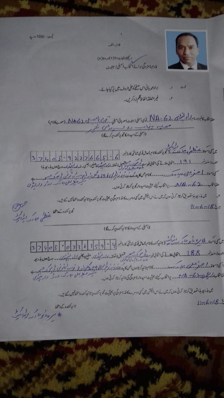حلقہ این اے 62 سے اصغر علی مبارک کے کاغذات نامزدگی منظور