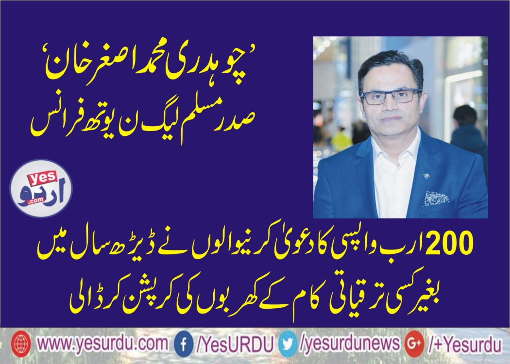 پیرس؍اسلام آباد(ایس ایم حسنین) پاکستان مسلم لیگ ن یوتھ ونگ فرانس کے صدر چوہدری محمد اصغر خان نے حکومت پر شدید تنقید کرتے ہوئے کہا ہے کہ عوام کیساتھ کرپشن اورلوٹا ہوا پیسہ واپس لانے کے نام پر دھوکہ کیا گیا۔ ملک میں ایک مافیا کی حکومت ہے جس نے عوام کے سانس لینے تک پر ٹیکس عائد کررکھا ہے اورعوام کو ریلیف کے نام پر اربوں روپے ہڑپ کیے جارہے ہیں۔