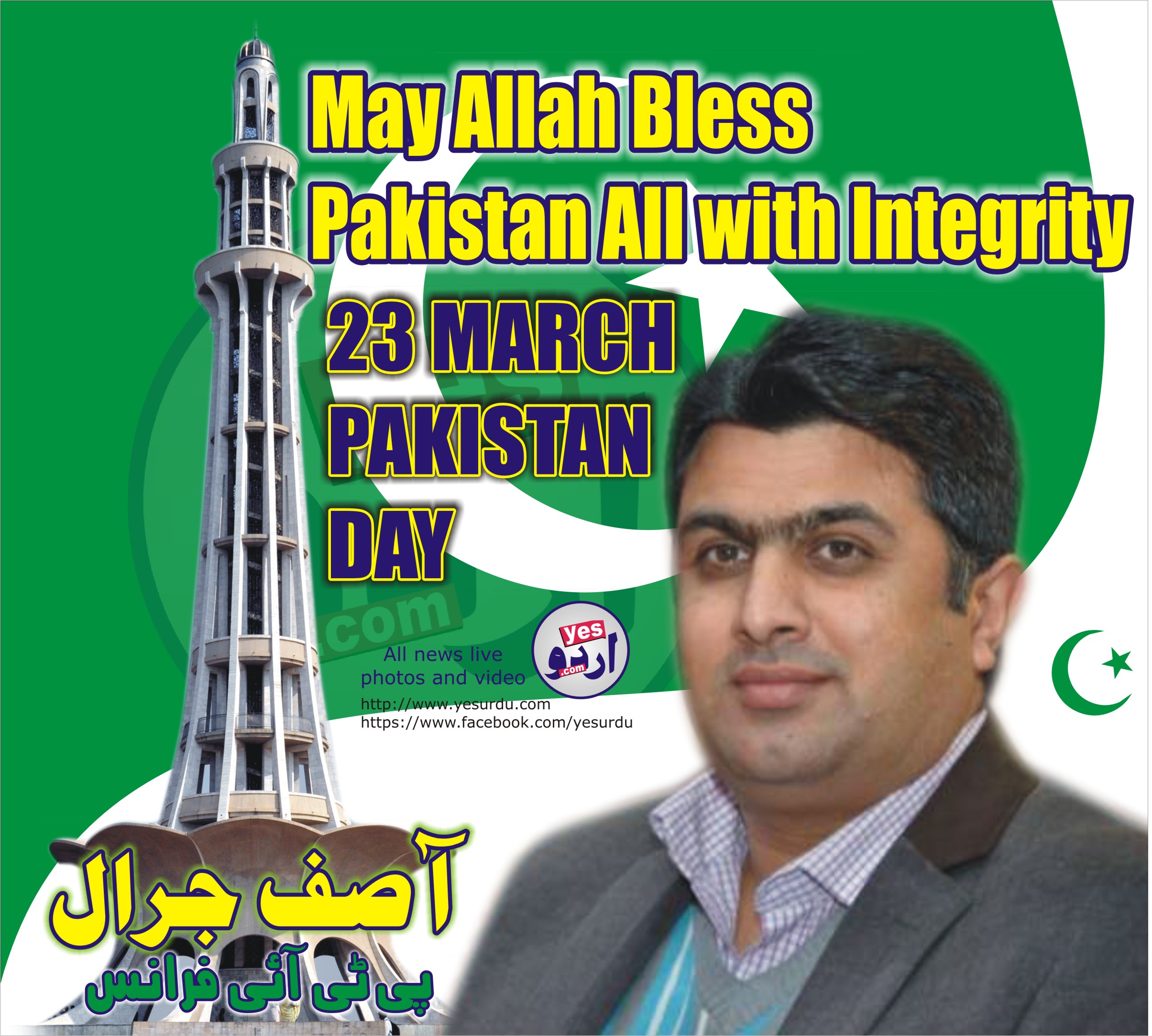 آصف جرال پی ٹی آئی فرانس کا 23 مارچ کے حوالے سےاشتہار۔