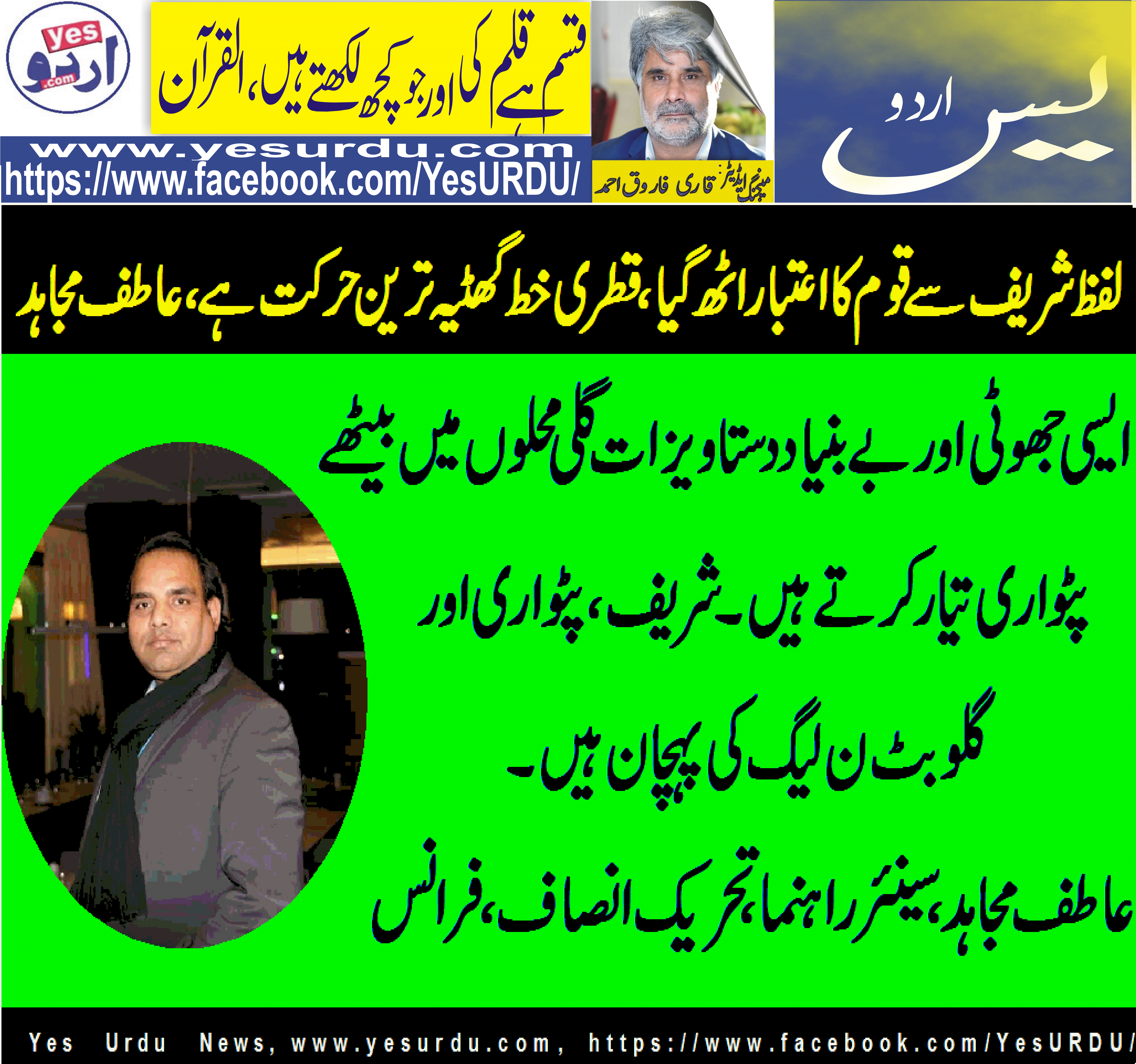 لفظ شریف سے قوم کا اعتبار اٹھ گیا، قطری خط گھٹیہ ترین حرکت ہے ،عاطف مجاہد