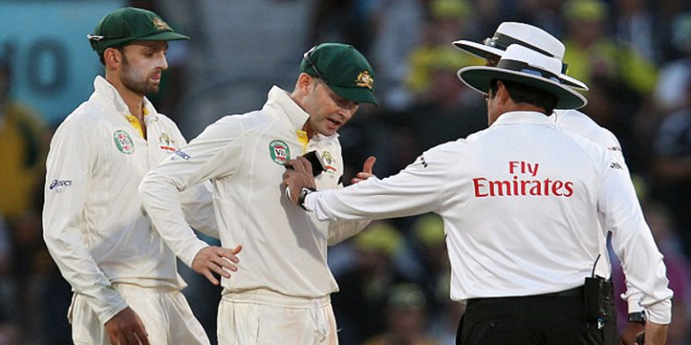 تفصیلات کےمطابق حالیہ ایشز سیریز کے تیسرے ٹیسٹ کے آخری روز سیریز میں تین ایک کی شکست کے خوف سے بے حال آسٹریلوی کپتان مائیکل کلارک بجائے اپنی اور اپنی ٹیم کی کارکردگی بڑھانے کے کھیل کےمیدان میں بدمعاشی پر اتر آئے اور علیم ڈار پر میچ ختم کرنے کے لئے دباؤ ڈالنے کی کوشش کی۔ علیم ڈار کے انکار پر خراب روشنی کا بہانہ کیا اس پر بھی بات نہ بنی تو علیم ڈار سے بحث و تکرار شروع کر دی اور بات یہاں تک آپہنچی کہ ایک دم ہاتھ سے اشارہ کر کے علیم ڈار کو تھپڑ مارنے کی دھمکی بھی دے ڈالی ۔ جس پر علیم ڈار نے سخت انداز میں انہیں ایک طرف کرتے ہوئے میچ جاری رکھنے کا فیصلہ برقرار رکھنے کا اعلان کر دیا۔علیم ڈار نے واقعہ کی تفصیلات سے آئی سی سی کو آگاہ کر دیا ہے جس کے بعد آسٹریلوی کپتان کے خلاف سخت کارروائی کئے جانے کا امکان ظاہر کیا جارہا ہے۔