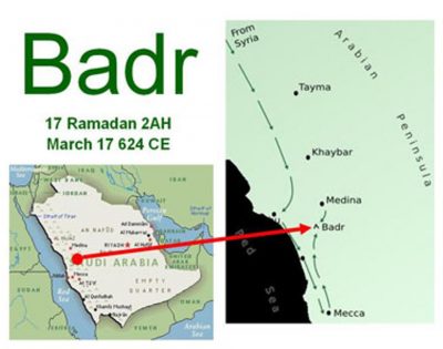 ماہ رمضان المبارک بڑی عظمت والامہینہ ہے ۔اس ماہ مقدس کے بارے میںارشادباری تعالیٰ ہے “رمضان وہ مبارک مہینہ ہے جس میں قرآن کریم نازل کیاگیا”یہ مقدس مہینہ شروع ہوتے ہی ہمارے دلوں میں اس واقعے کی یادتازہ ہوجاتی ہے جسے تاریخ “غزوہ بدر ” کے نام سے یادکرتی ہے ۔بدرایک کنوئیں کا نام ہے جومدینہ طیبہ سے تقریباً80میل کے فاصلے پرواقع ہے ۔یہ کنواں بہت ہی مشہورتھااس لئے اس کے آس پاس کی آبادی دیہات کوہی بدرکہاجاتا جہاں پریہ غزوہ ہوا تھا۔یہ کنواں مسمی بدرابن عامرنے کھوداتھا۔رمضان المبارک کے روزوں کی فرضیت کے بعدپہلے ہی رمضان کی17تاریخ2 ہجری جمعہ کومیدان بدرتاریخ اسلام کاانتہائی دردناک اوردلوںکوہلا کر رکھ دینے والا سانحہ رونماہوا۔