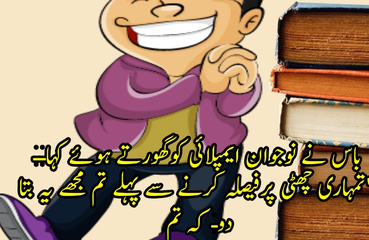 “تمہاری چھٹی پرفیصلہ کرنے سے پہلے تم مجھے یہ بتا دوـ کہ تم چاہ کیارہے ہو ـ سال میں کام لئے 365 دن ہوتے ہیں جس میں 52 ہفتے ہوتے ہیں اورہر ہفتے میں تمہیں 2چھٹیاں ملتی ہیں یوں کام کے لیے 261 دن بچتے ہیں چونکہ روزانہ تم 8گھنٹے کام کرتے ہواور16 گھنٹے نہیں کرتے اس طرح مزید170 دن ضائع ہوجاتے ہیں اورصرف 91 دن باقی بچتے ہیں ــ روز کاایک گھنٹہ لنچ اور30 منٹ کافی بریک کاحساب لگایاجائے توبالترتیب46 اور23 دن سالانہ مزیدصرف ہوجاتےہیں اوراس طرح کل 22 دن بچتے ہیں ـ ان 22 دنوں میں 2دن تم بیماری کے باعث غیرحاضرہوتے ہو 5ہماری آفس تعطیلات ہیں جبکہ ہم ہرایمپلائی کو14 دن سالانہ چھٹیاں دیتے ہیں ـ کل ملاکریہ21دن بن جاتے ہیں اورکام کے لیے ایک دن ہی بچتا ہے ـــ اب اس ایک دن کی بھی تمہیں چھٹی چاہیے ـــــ؟”