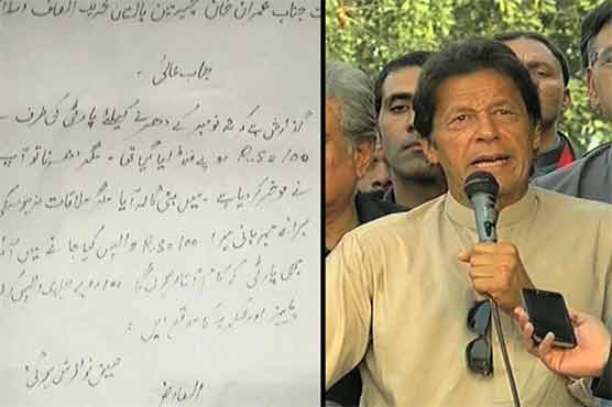 اسلام آباد: کپتان نے دھرنا نہ دیا، کارکن کا دل ٹوٹ گیا۔ اللہ دتہ نے عمران خان کو خط لکھ ڈالا، کہتے ہیں  آپ نے ملاقات کی، نہ دھرنا دیا، احتجاج کیلئے جو سو روپے دیئے، واپس کر دیں۔