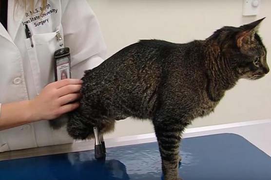 امریکا میں بلی کو دو مصنوعی ٹانگیں لگا کر چلنے کے قابل بنا دیا گیا