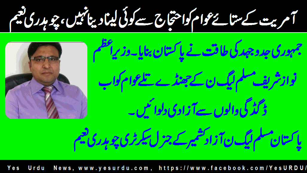 پیرس(یس اردو نیوز) پاکستان مسلم لیگ ن آزاد کشمیر کے جنرل سیکرٹری چوہدری نعیم نے اپنے بیان میں کہا ہے کہ جمہوری جدوجہد کی طاقت نے پاکستان بنایا۔وزیر اعظم نواز شریف مسلم لیگ ن کے جھنڈے تلے عوام کو اب ڈگڈگی والوں سے آزادی دلوائیں۔ آمریت کے ستائے عوام کو احتجاج سے کوئی لینا دینانہیں۔جمہوریت کی شاہراہ صراط مستقیم کی طرح ہے جو اس سے ہٹا وہ انشااللہ ’خسارہ پانے والوں میں سے ہوگا