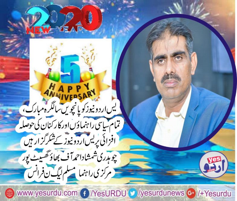 یس اردو نیوز کی پانچویں سالگرہ پر دلی مبارکباد، تمام سیاسی راہنمائوں اورکارکنان کی حوصلہ افزائی پریس اردو نیوز انتظامیہ سے اظہار تشکر، چوہدری شمشاد احمد آف بھائو گھسیٹ پور