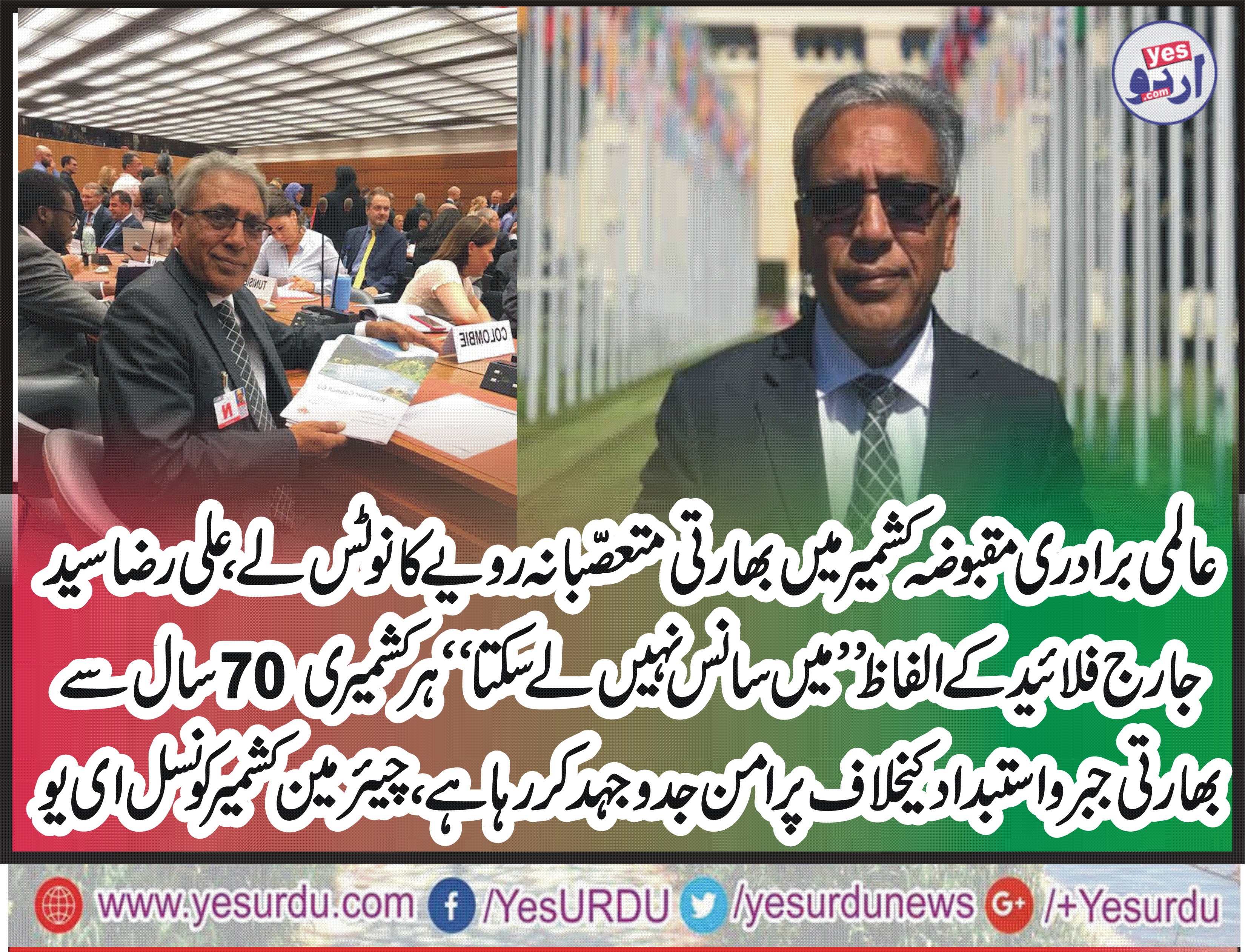 برسلز (مانیٹرنگ رپورٹ) چیئرمین کشمیرکونسل ای یو علی رضا سید نے کہا ہے کہ عالمی برادری کو مقبوضہ کشمیر کے مظلوم عوام کے ساتھ بھارتی حکام کے متعصبانہ رویئے کا بھی نوٹس لینا چاہیے۔