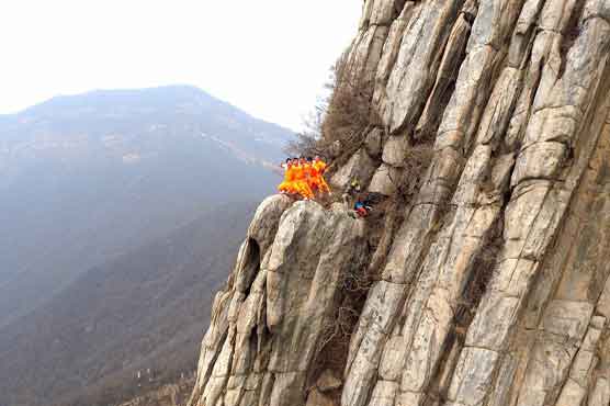 صوبہ ہنان میں چینیوں نے سنگلاخ پہاڑوں پر کئی میٹر اوپر جا کر کَنگ فُو فن کا مظاہرہ کیا