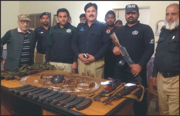 کھاریاں(نیئر صدیقی سے)کھاریاں پولیس نے واردات کی نیت سے کھڑے ڈبل کیبن ڈالہ سے بھاری مقدار میں ناجائز اسلحہ برآمد کر لیا۔ ۳ملزم گرفتار۔ تفصیلات کے مطابق پولیس نے ڈنگہ روڈ کے قریب لنک کراڑیوالہ روڈپر مشکوک حالت میں کھڑی گاڑی کو چیک کیا تو اس سے تین عدد کلاشنکوف، 11میگزین اور گولیوں کے 600راؤنڈ برآمدہوئے۔ گاڑی پر سوار 3ملزم علی حسن ولد عبدالغنی سکنہ نوشہرہ سانسی گوجرانوالہ، محسن نصیر ولد نصیر احمد سکنہ حسنہ ججا تحصیل پسرور ضلع سیالکوٹ اور شاہ نواز ولد ضیاء اللہ سکنہ حسنہ ججا تحصیل پسرور ضلع سیالکوٹ گرفتار کر لئے گئے۔ شبہ ظاہر کیا جا رہا ہے کہ ملزم کسی بڑی واردات کی نیت سے کراڑیوالہ روڈ پر کھڑے تھے۔ پولیس مصروف تفتیش ہے۔
