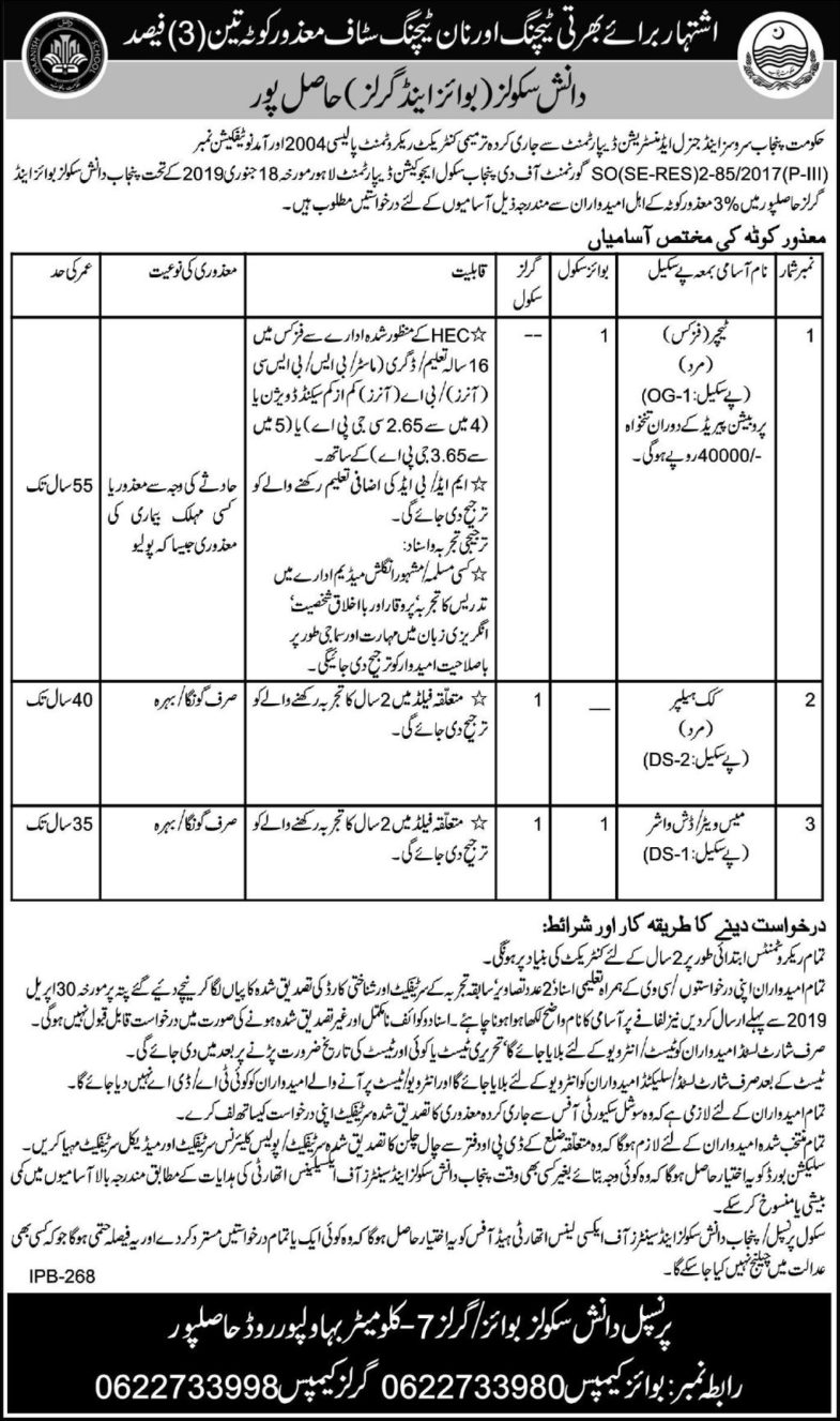 Daanish Schools (Boys/Girls) Bahawalpur Jobs 2019 for Teacher & Support Staff (Disable Quota)10 April, 2019 Post Views - پوسٹ کو دیکھا گیا: 43