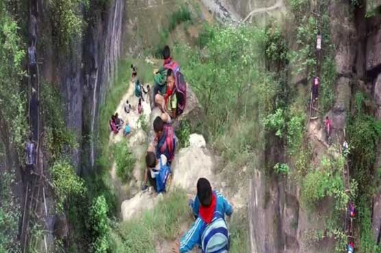 بیجنگ (یس اُردو) تعلیم کی قدر و قیمت کوئی ان چینی طلبہ سے پوچھے جو علم کے حصول کے لیے اپنی جانیں داؤ پر لگا دیتے ہیں ، چھ سال کا ننھا طالبعلم بھی کٹھن سفر کے بعد اسکول پہنچتا ہے ۔کاندھے پر بستہ لٹکائے بلند و بالا پہاڑ سے اترنا ، یہ کوئی مہم جو نہیں بلکہ چینی طالبعلم ہیں جنہیں علم حاصل کرنے کے لیے 2 ہزار 624 فٹ کی بلندی سے نیچے آنا پڑتا ہے ۔2 گھنٹے کے اس دل دہلا دینے والے سفر میں والدین اپنے بچوں کی حفاظت کے لیے رسی لیے ان کے ساتھ ساتھ ہوتے ہیں ۔ یہ مہم جو بچے کلف ولیج کے رہائشی ہیں جو جنوب مغربی چین میں 2 ہزار 264 فٹ کی بلندی پر واقع ہے ۔ 6 سے 15 سال کے طلباء یہ خطرناک سفر روز کرتے ہیں ، 72 خاندانوں پر مشتمل اس گاؤں کے رہائشیوں کا پیشہ زراعت ہے ۔