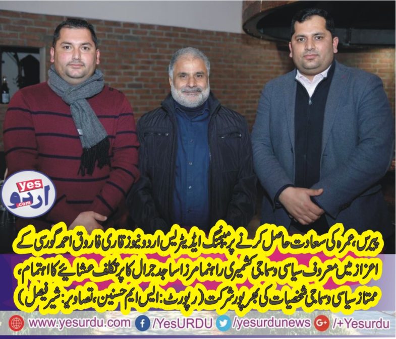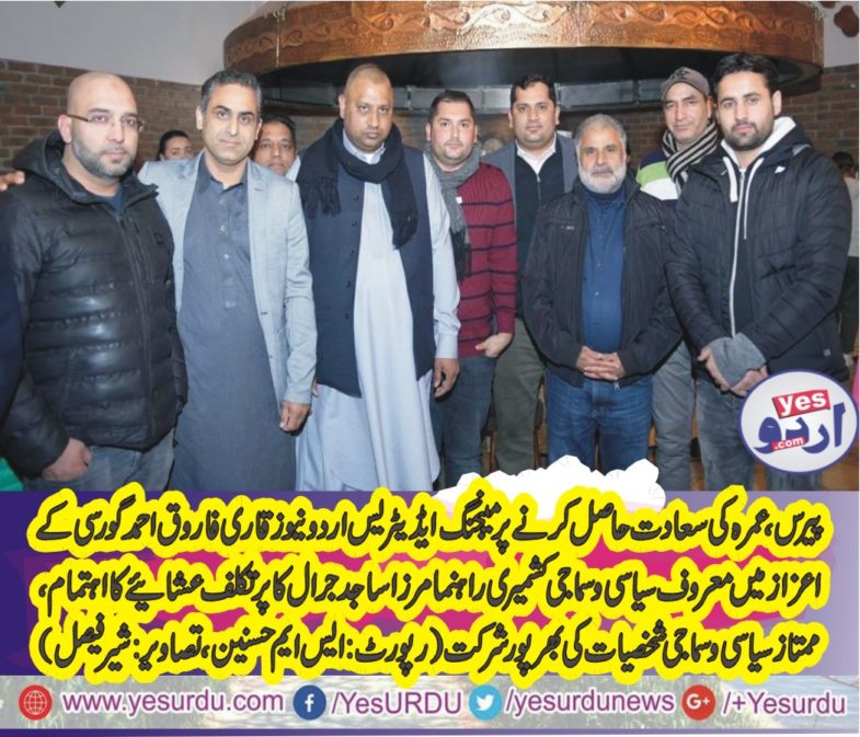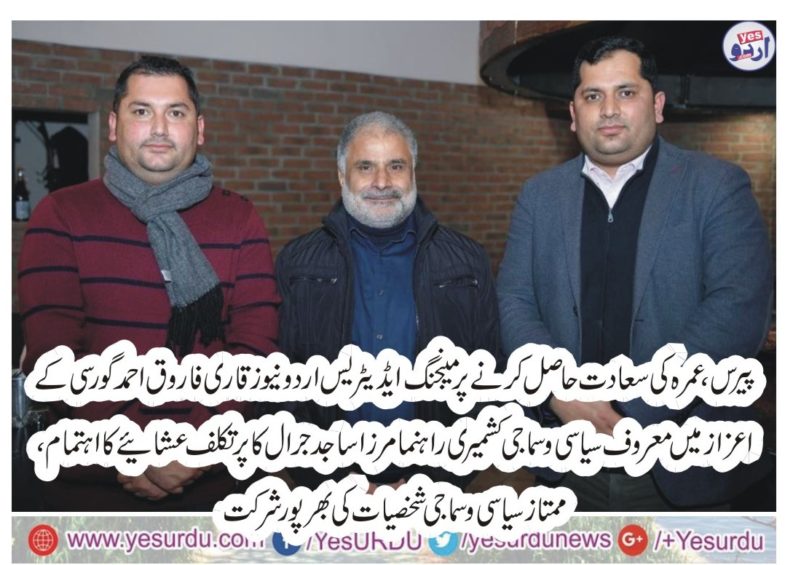 پیرس٫عمرہ شریف کی ادائیگی کے بعد پیرس واپسی پر مینجنگ ایڈیٹر یس اردو نیوز قاری فاروق احمد گورسی کے اعزاز میں معروف سیاسی وسماجی و کشمیری راہنما مرزا ساجد جرال کا پرتکلف عشائیے کا اہتمام٫پیرس کی معروف سیاسی وسماجی شخصیات کی شرکت اور مبارکباد