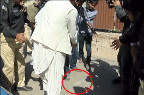 ملزم عدالت میں پیشی کیلئے آئے ہوئے تھے ، پیشی کے موقع پر دھکم پیل کے دوران ٹی وی کے کیمرہ مین کے نزدیک آنے سے ہاتھ سے تسبیح گر گئی