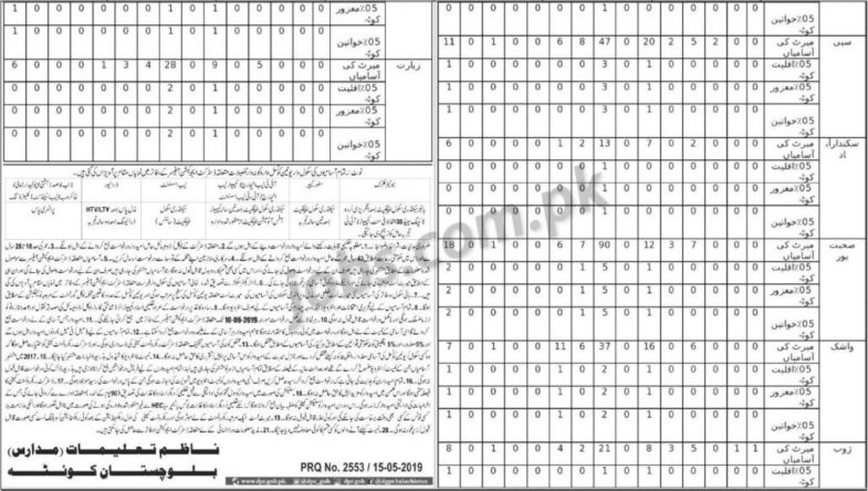 Education Department Balochistan Jobs 2019 – Apply Online:
