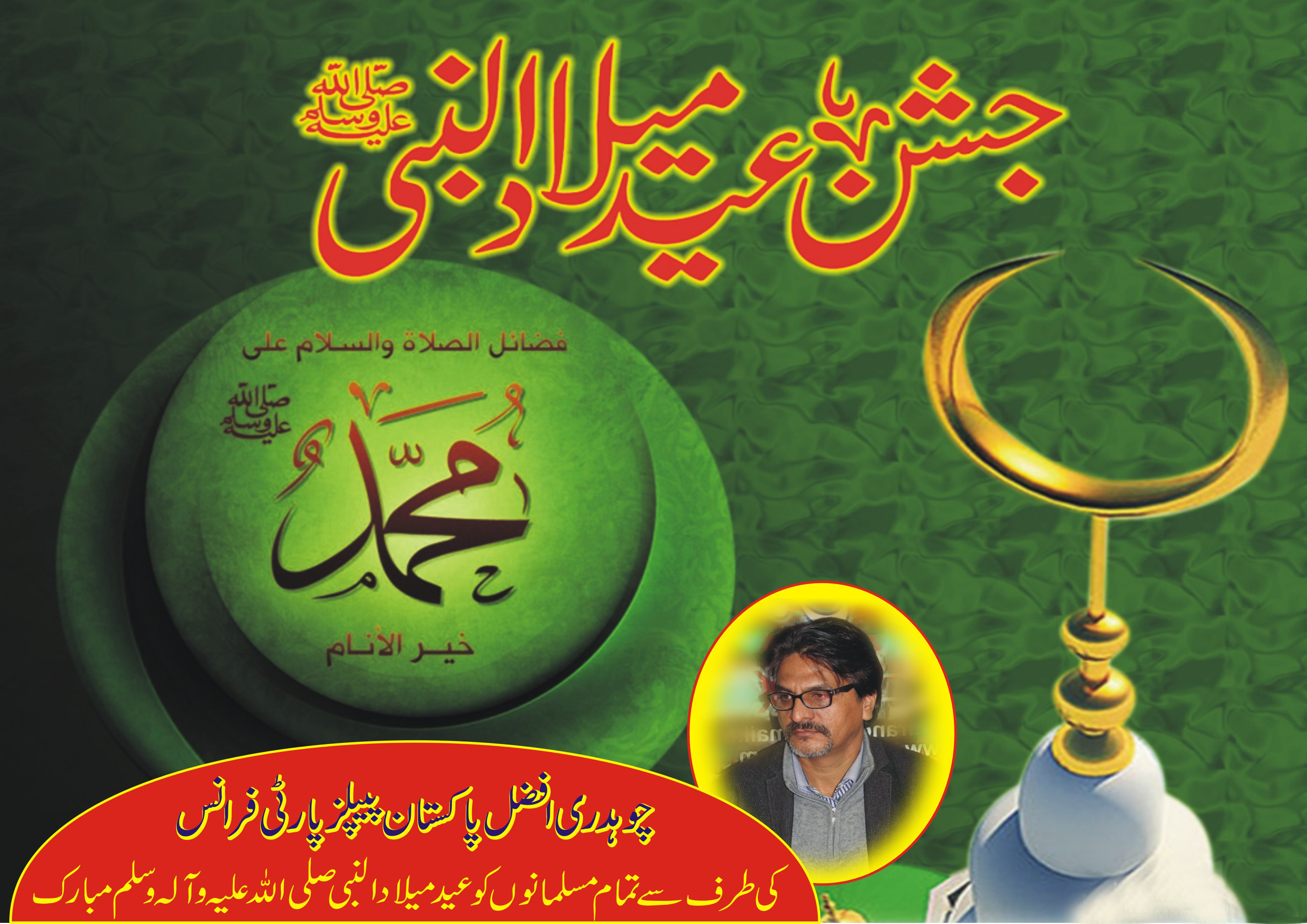 چوہدری افضل پاکستان پیپلز پارٹی فرانس کی طرف سے تمام مسلمانوں کو عید میلاد النبی صلی اللہ علیہ وآلہ وسلم مبارک۔