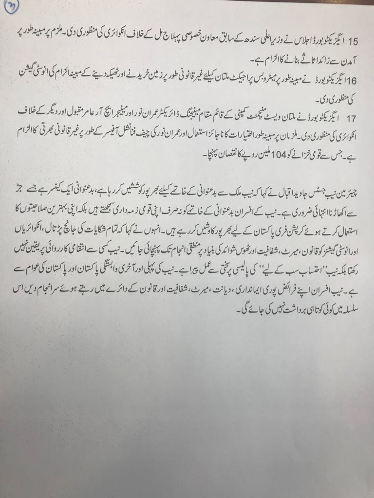16 ایگزیکٹو بورڈ نے مبینہ طور پر میٹرو بس پراجیکٹ ملتان کیلئے غیرقانونی طور پر زمین خریدنے اور ٹھیکہ دینے کے مبینہ الزام کی انوسٹی گیشن کی منظوری دی۔
