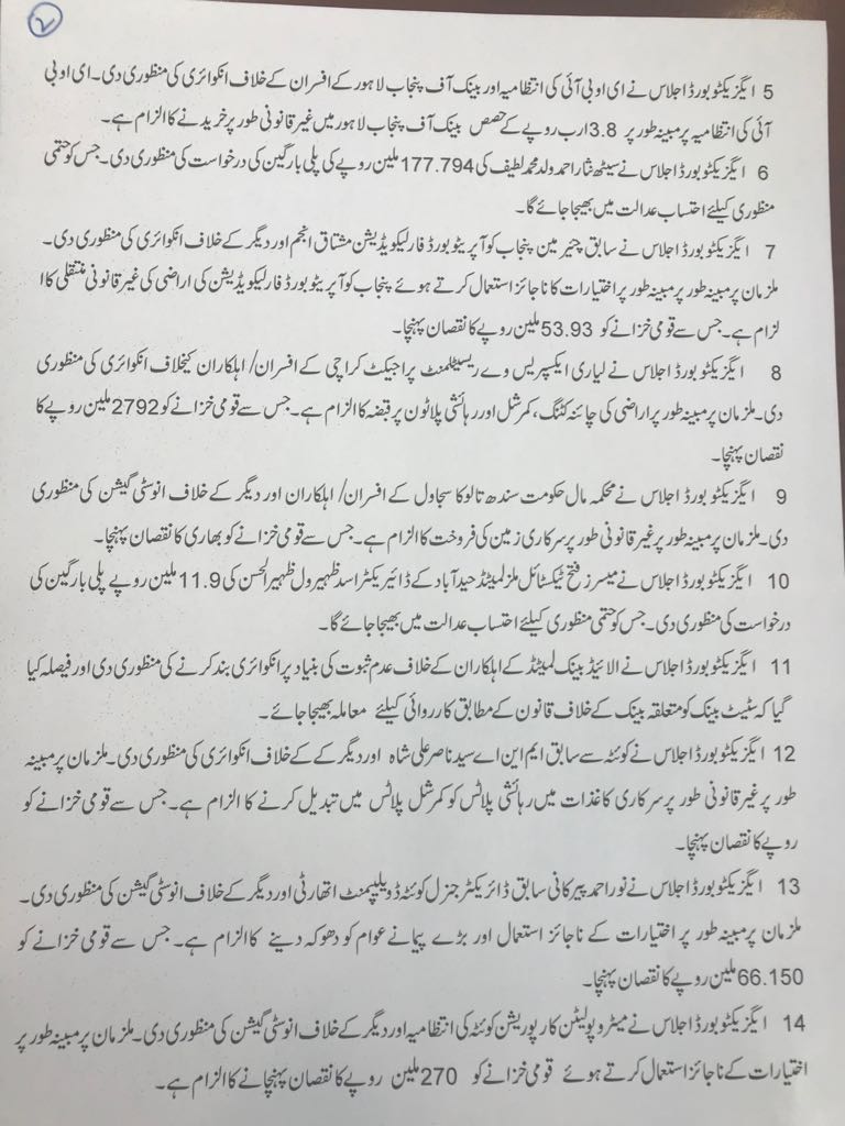 6ایگزیکٹو بورڈ اجلاس نے سیٹھ نثار احمد ولد محمد لطیف کی 177.794ملین روپے کی پلی بارگین کی درخواست کی منظوری دی۔ جس کو حتمی منظوری کیلئے احتساب عدالت میں بھیجا جائے گا۔