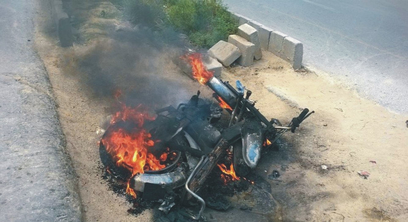 موٹرسائیکل کو گرتے ہی آگ لگ گئی،چندمنٹوں میں جل کرکوئلہ بن گیا،