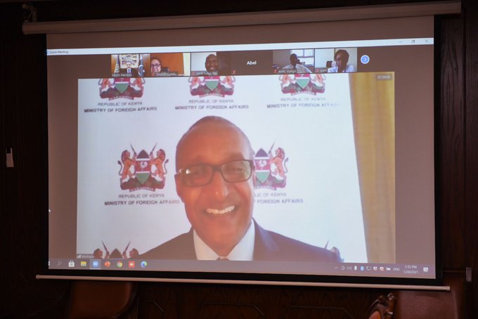 اسلام آباد(ایس ایم حسنین) پاکستان اور کینیا کے درمیان سیکرٹری خارجہ کی سطح پر پی بی سی کے تیسرے رائونڈ کا ورچوئل طریقے سے وزارت خارجہ میں انعقاد کیا گیا۔ اس موقع پر سیکرٹری خارجہ سہیل محمود اور کینیا کے وزارت خارجہ کے پرنسپل سیکرٹری امب مچھریہ نے پاک کینیا مذاکرات کے تیسرے راؤنڈ میں شرکت کی۔ سیکرٹری خارجہ نے دوطرفہ تعلقات کو جامع طور پر آگے بڑھانے اورمشترکہ تعاون کو مزید مضبوط بنانے کے عزم کا اعادہ کیا۔انھوں نے انگیج افریقہ کے اقدام پرروشنی ڈالی۔اس موقع پر دونوں شخصیات نے افریقہ سے منسلک علاقوں میں امن و سلامتی کے امور پر تبادلہ خیال کیا۔