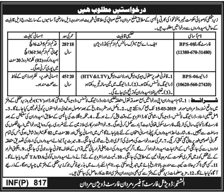 Forest Department KP Jobs 2019 for 100+ Jr Clerks, Foresters, Forest Guards & Drivers (Multiple Districts)25 February, 2019 Post Views - پوسٹ کو دیکھا گیا: 48
