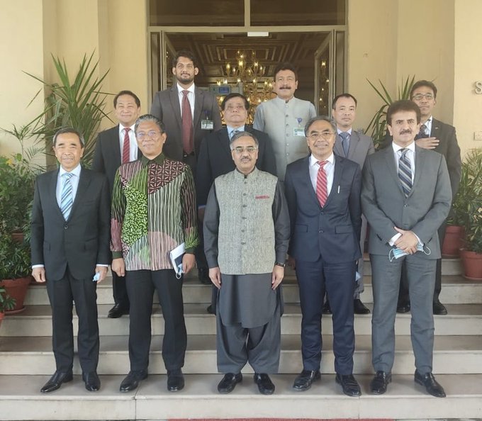 اسلام آباد(ایس ایم حسنین) پاکستان آسیان ممالک کے ساتھ سیاسی، معاشی، سلامتی، سیاحت، تعلیم اور ثقافت سمیت ہر شعبے میں تعاون میں اضافے کیلئے پرعزم ہے۔ یہ بات سکریٹری خارجہ سہیل محمود نے آسیان ممالک کے سفارتی مشنز کے سربراہان کے ساتھ وزارت خارجہ میں گول میز کانفرنس کے موقع پر کہی۔ سکریٹری خارجہ سہیل محمود نے (جمعہ) کے روز وزارت خارجہ آمد پر آسیان ممالک کے سفارتی مشنز کے سربراہان کا استقبال کیا۔اس موقع پر سکریٹری خارجہ نے پاکستان کے “وژن ایسٹ ایشیاء” کی پالیسی سے ہم آہنگ ، آسیان شراکت داری کو ہر جہت میں مستحکم کرنے کے عزم کا اعادہ کیا۔ ترجمان دفتر خارجہ کی طرف سے جاری بیان میں کہا گیا ہے کہ انہوں نے سیاسی ، معاشی ، سلامتی ، سیاحت ، تعلیم اور ثقافتی ڈومینز میں قریبی تعاون کی اہمیت پر خصوصی طور پر زور دیا۔ سکریٹری خارجہ نے پاکستان کی طرف سے جنوب مشرقی ایشیائی ممالک کے ساتھ تعلقات اور اس کے علاقائی فن تعمیر میں آسیان کی مرکزی حیثیت کو تسلیم کرنے کو ترجیح قرار دیا سکریٹری خارجہ نے آسیان کے ساتھ تعلقات میں اضافے اور آسیان کے رکن ممالک کے ساتھ تجارتی اور اقتصادی روابط کو گہرا کرنے کے عزم کے ساتھ پاکستان کی جانب سے اٹھائے گئے اقدامات کو بیان کیا۔ انہوں نے مزید کہا کہ یہ پاکستان کے اقتصادی سفارتکاری کے اقدام کا حصہ ہے جس پرخصوصی توجہ دی جارہی ہے۔ ملاقات کے دوران تجارت ، باہمی سرمایہ کاری ، سلامتی اور دفاعی تعاون ، سیاحت ، تعلیم ، اور ثقافت کے وسیع امکانات پر تبادلہ خیال کیا گیا۔اس موقع پر دو طرفہ اور آسیان وسیع ادارہ جاتی میکانزم کا زیادہ سے زیادہ استعمال کرتے ہوئے علاقائی اقتصادی جامع شراکت داری اور چین پاکستان اقتصادی راہداری جیسے دور رس منصوبوں کے تحت امکانات کی تلاش کے لئے اتفاق کیا گیا۔ سیکرٹری خارجہ کی زیر صدارت اجلاس میں ملائیشیا ، فلپائن ، انڈونیشیا ، برونائی دارالسلام ، میانمار ، تھائی لینڈ اور ویتنام کے سربراہان مشن نے شرکت کی۔ پاکستان 1993 سے آسیان کا سیکٹرل ڈائیلاگ پارٹنر ہے اور 2004 سے آسیان کے علاقائی فورم کا ممبر بھی ہے۔
