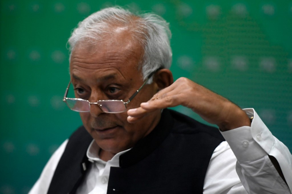 Pakistan’s Aviation Minister Ghulam Sarwar Khan speaks during a press conference in Islamabad on June 24, 2020, after announcing in parliament the findings report of last month Pakistan International Airlines (PIA) plane crash. – A plane crash which killed 97 people in Pakistan last month was because of human error by the pilot and air traffic control, according to an initial report into the disaster released on June 24. (Photo by Aamir QURESHI / AFP)