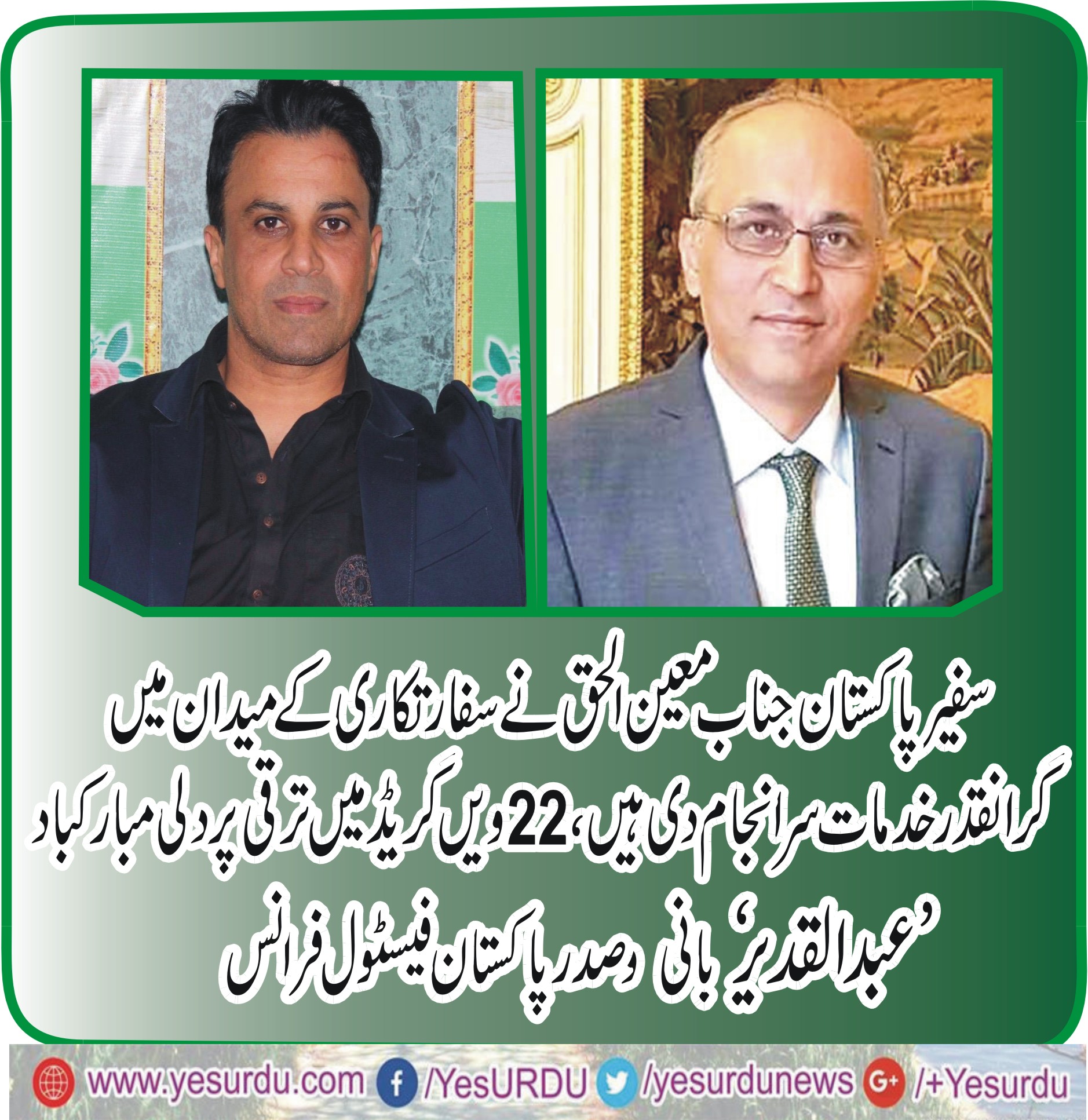 سفیر پاکستان جناب معین الحق نے سفارتکاری کے میدان میں گرانقدرخدمات سرانجام دی ہیں، ، 22وہں گریڈ میں ترقی پانے پر دلی مبارکباد، عبدالقدیر