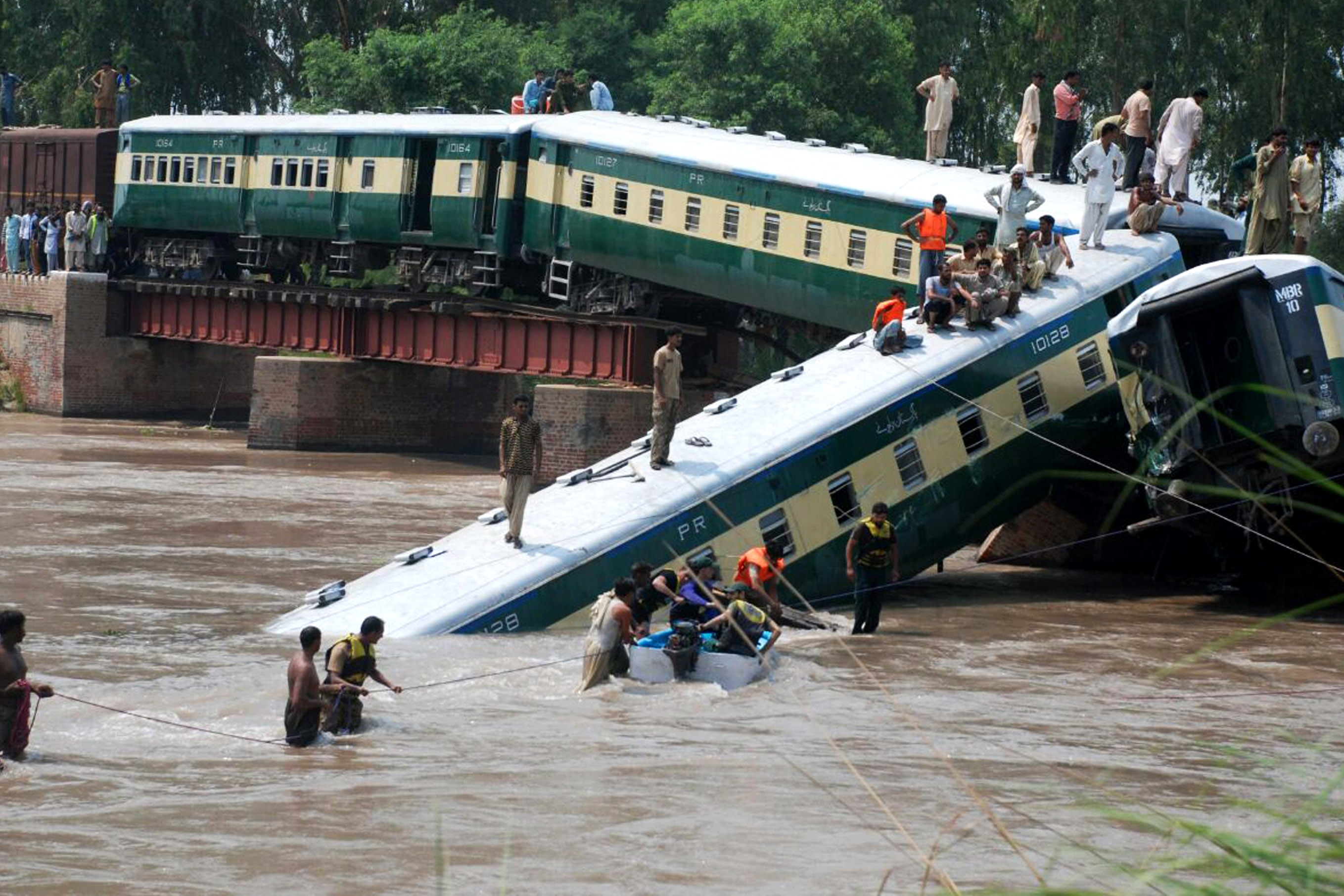 ٹریک پر انجن اور بوگیوں کے ستر فٹ تک رگڑنے کے نشانات پائے گئے۔
