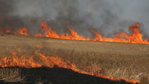فصل کی کٹائی کرنیوالی مشین سے اچانک چنگاری نکلنے سے گندم کی فصل کو آگ لگ گئی