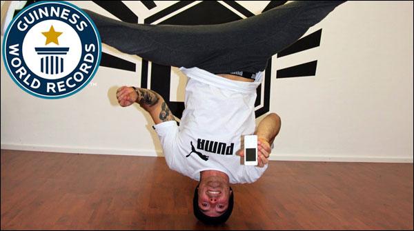 سر کے بل گھومتے ہوئے ٹیکسٹ میسیج ٹائپ کرنے والے نوجوان نے دیکھنے والوں کو تو گھمایا ہی ساتھ ہی عالمی ریکارڈ بھی بنادیا۔