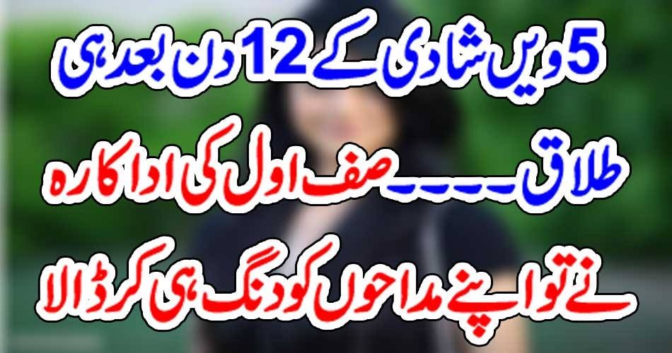پانچویں شادی کے 12 دن بعد ہی طلاق ۔۔۔۔۔ صف اول کی اداکارہ نے تو اپنے مداحوں کو دنگ ہی کر ڈالا