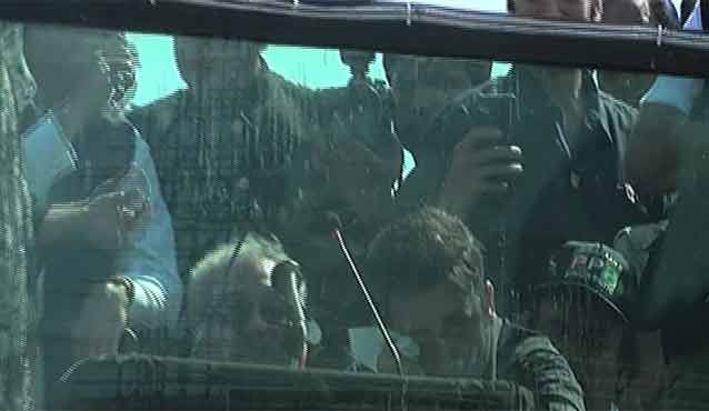 کارساز پہنچ کر بلاول بھٹو زرداری نے بھی ایک بڑے جلسہ عام سے خطاب کیا۔ اس موقع پر انہوں نے کہا کہ ملک نواز شریف کی غلط معاشی اور سٹریٹجک پالیسیوں کی وجہ سے تباہ ہو رہا ہے۔ انہوں نے عمران خان کے متحدہ اپوزیشن سے نکلنے اور پارلیمنٹ کے مشترکہ اجلاس میں شرکت نہ کرنے کے فیصلوں کو بھی کڑی تنقید کا نشانہ بنایا۔ بلاول نے مودی کو بھی ایک بار پھر گجرات اور کشمیر کے مسلمانوں کا قصاب قرار دیا۔