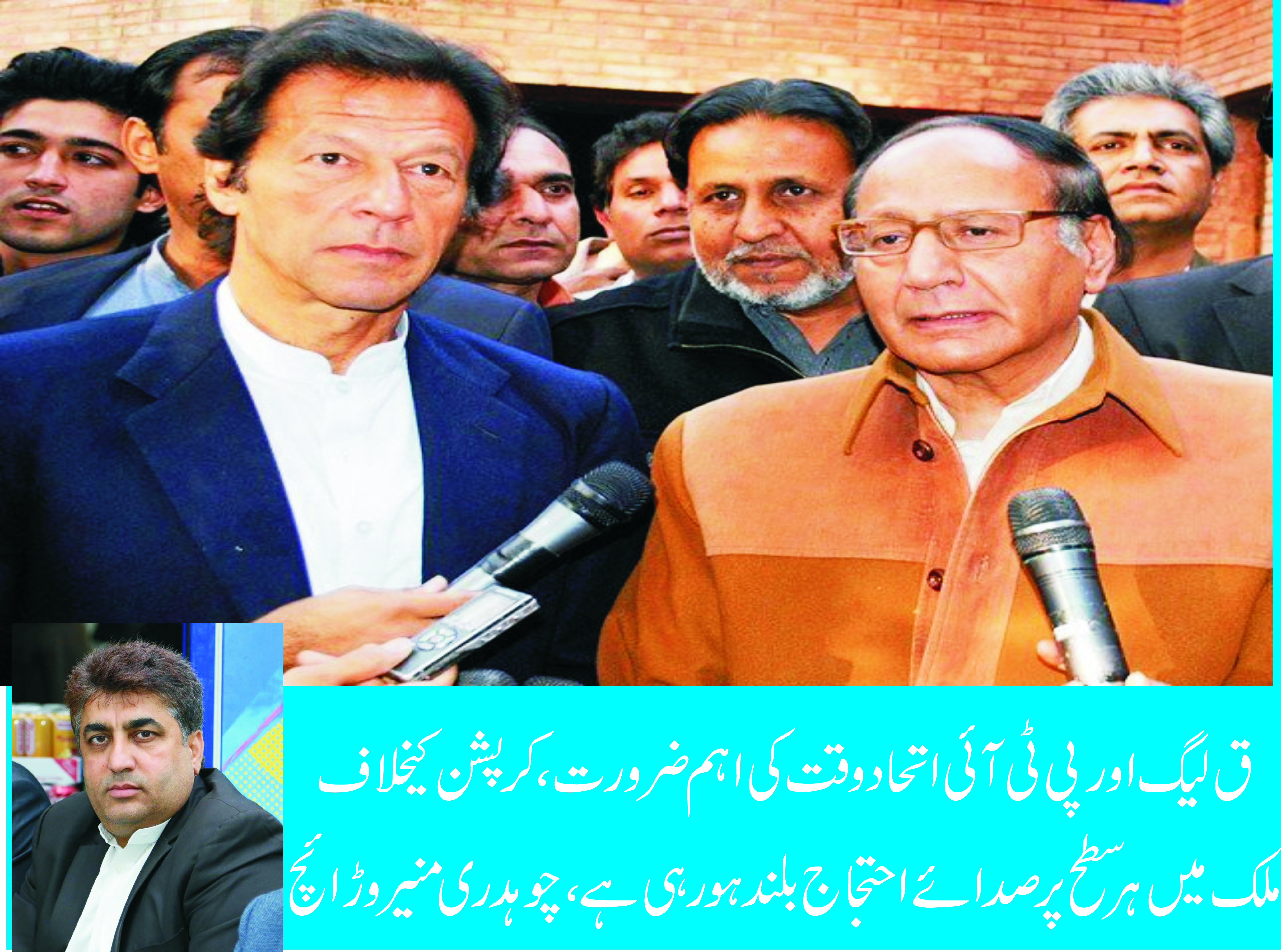 فرانس(یس نوز)پاکستان مسلم لیگ ق فرانس کے صدر چوہدری منیر وڑائچ نے چوہدی شجاعت حسین اور جناب پرویز الہی صاحب کے ممکنہ پاکستان تحریک انصاف کے ساتھ اتحاد کا خیر مقدم کرتے ہوئے کہا ہے کہ یہ اتحاد وقت کی اہم ضرورت ہے ۔ ن لیگ کی کرپشن کے خلاف ملک میں ہر سطح پر صدائے احتجاج بلند ہو رہی ہے ایسے میں عوام کی امنگوں کی ترجمانی کرتے ہوئے چوہدری شجاعت حسین صاحب کی مدبرانہ قیادت میں ق لیگ کا کرپشن کے خلاف ممکنہ اتحاد میں شریک ہونا وقت کی اہم ضرورت تھی اس سے حکومتی ایوانوں میں ہلچل مچ جائے گی ۔
