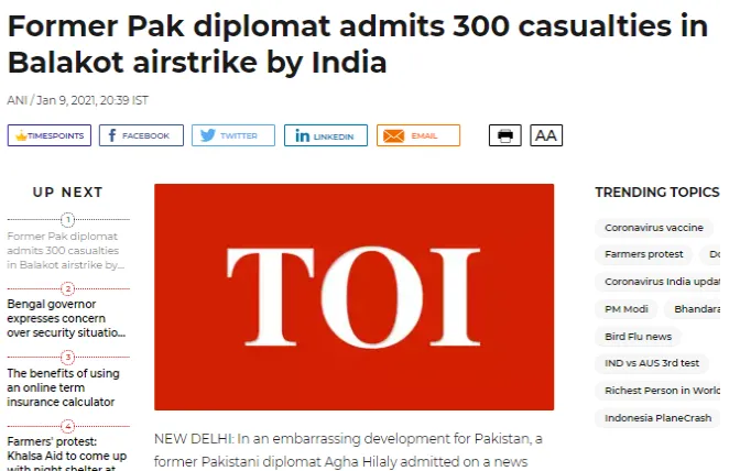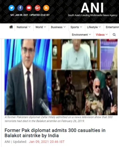 تاہم ، یوٹیوب پر اپ لوڈ کردہ ویڈیو پروگرام ‘ایجنڈا پاکستان’ سے صاف ظاہر ہوتا ہے کہ بھارتی میڈیا نے ڈاکٹرڈ ویڈیو کو پاکستان کے خلاف اپنے متعصبانہ ایجنڈے کی خدمت کے ل. استعمال کیا۔ بحث کا موضوع تھا ‘دشمن کی ذخیرہ الفاظ استعمال کرنے کے تناظر میں“ سرجیکل اسٹرائیک ”، کیا پاکستان اپنا معاملہ کمزور بنا رہا ہے؟ ظفر ہلا لی اس سوال کا جواب تقریبا 4 4 بج کر 17 منٹ پر دینا شروع کر دیتا ہے۔ تقریبا 5: 14 منٹ پر وہ کہتے ہیں ” بین الاقوامی حد کو عبور کرتے ہوئے ہندوستان نے ایک ایسی جنگ کا ارتکاب کیا جس میں انہوں نے کم از کم 300 افراد کو ہلاک کرنے کا ارادہ کیا تھا۔واضح رہے کہ انڈیپینڈینٹ آزاد ذرائع نے انٹرنیٹ پر اس خبر اور ویڈیو کے جعلی ہونے